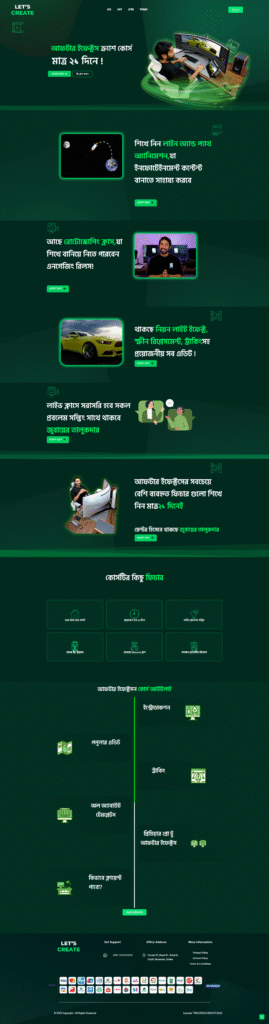 আমরা প্রতিটি ল্যান্ডিং পেজ প্রজেক্ট এমনভাবে তৈরি করেছি, যাতে ব্যবসার লক্ষ্য পূরণ হয় এবং ভিজিটরকে সহজে গ্রাহকে রূপান্তর করা যায়। নিচে আমাদের কিছু নির্বাচিত প্রজেক্ট দেখতে পাবেন, যা আমাদের ডিজাইন দক্ষতা এবং সৃজনশীলতার প্রমাণ।